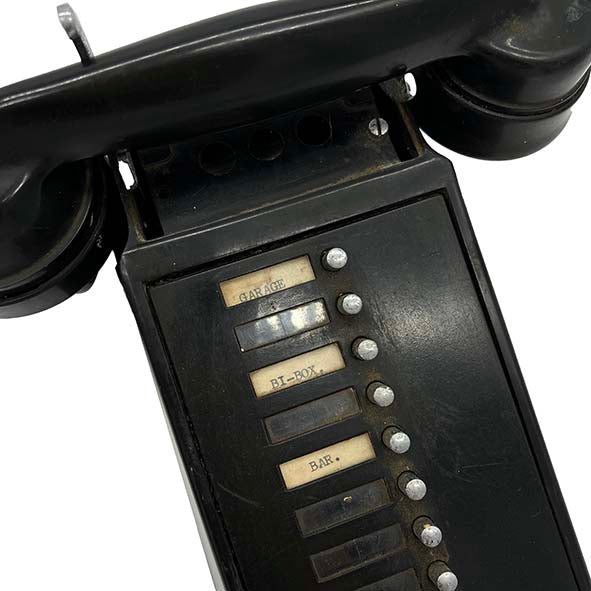 Corded. 10 line intercom, includes typewritten labels - garage - bi box - bar.