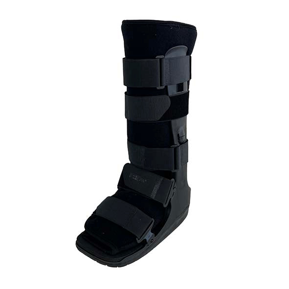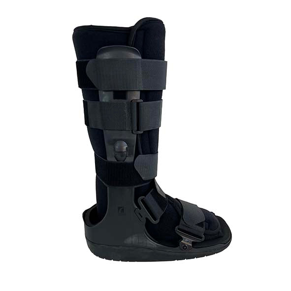 This ankle brace provides immobilization for patients suffering from soft tissue injury; grades 2 & 3 strains and sprains; and stable fractures.