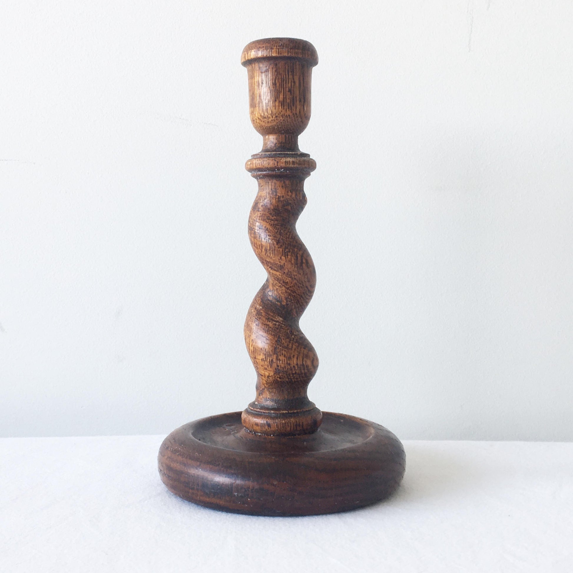 Victorian Candlestick with Twisted Wooden Stem.