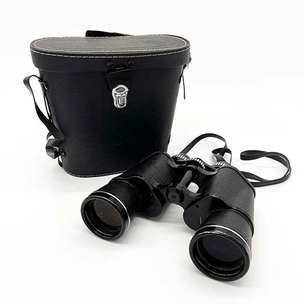 7 x 50 7.1 includes case & lens covers. Case closes fully only front.