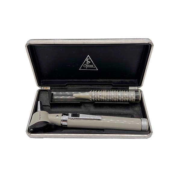 Heine Mini - Fibralux labelling. With ear speculums & case. Takes 2 x AA batteries, light in working condition