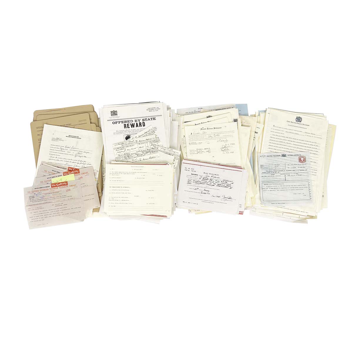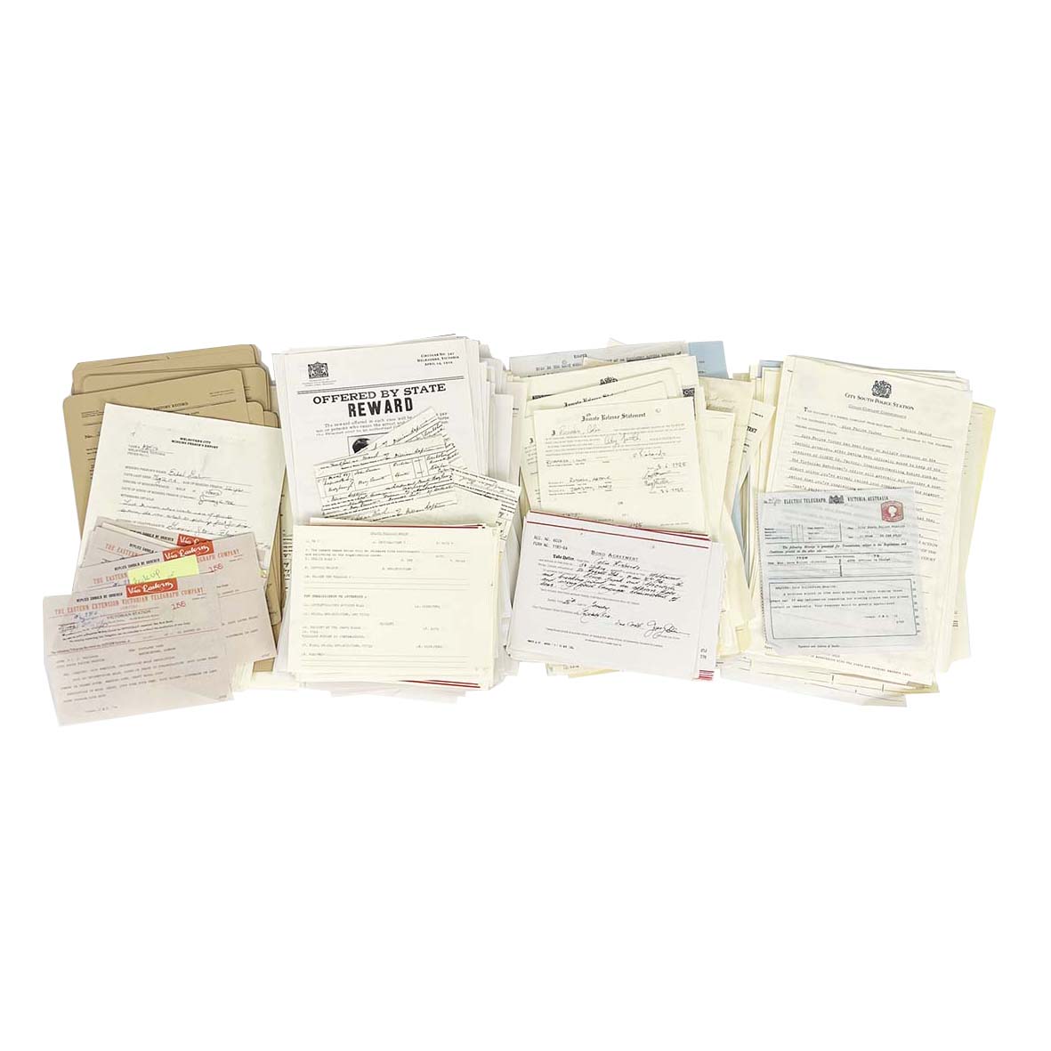 Mixed vintage style paperwork as pictured. Includes criminal records, rewards, telegraphs, court documentation, witness statements etc;
