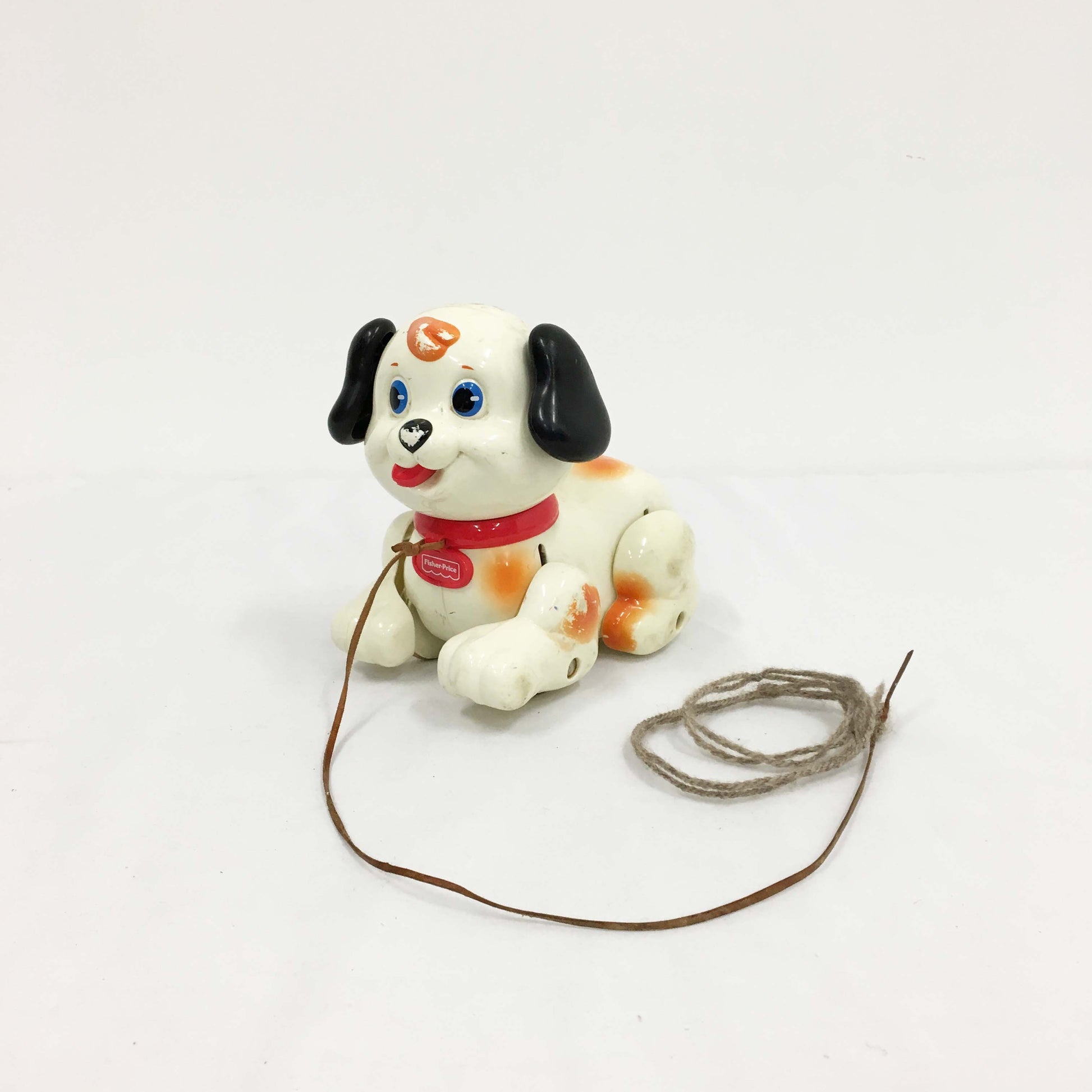 Vintage Fisher and Price Walking Dog Toy on Leather Lead circa 1980's