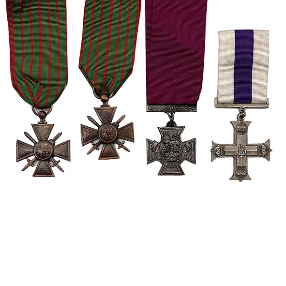 4. 2 x French Croix de Guerre (WW1 1914-1918) - Croix de Guerre medal issued by France to its Soldiers & allied Soldiers in 1918 for service in World War I.